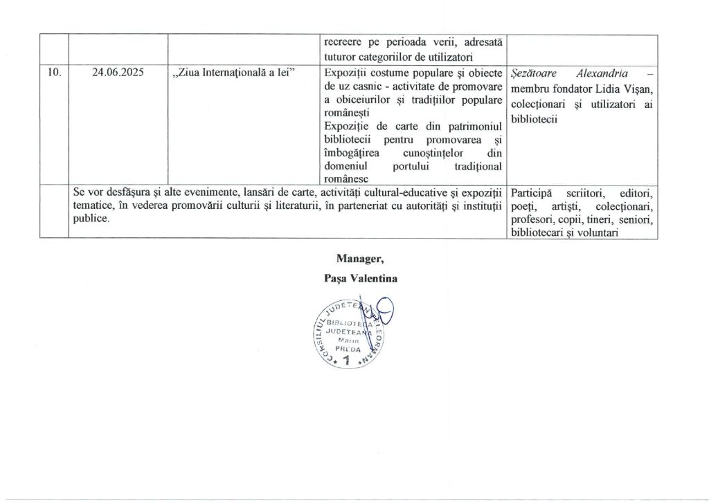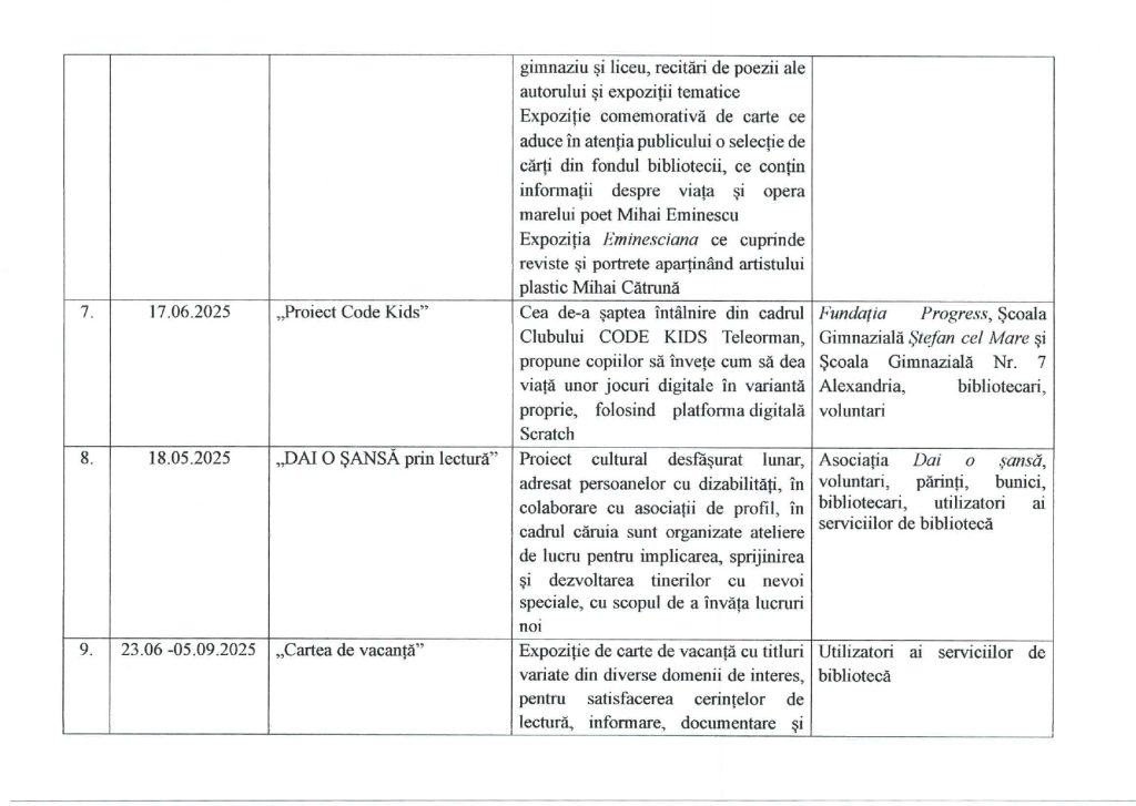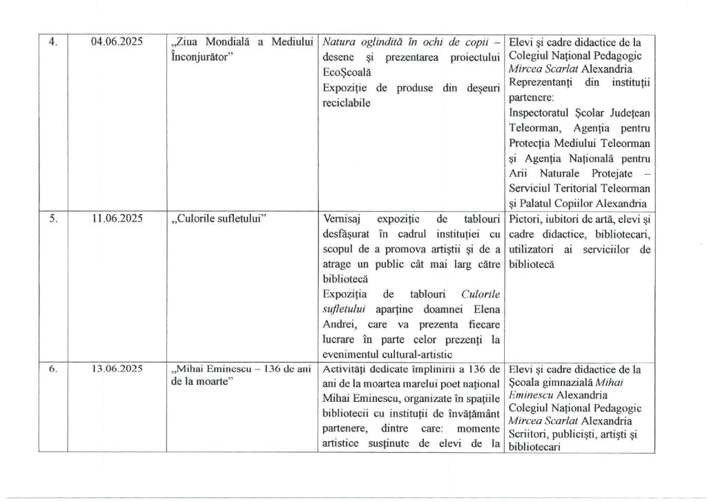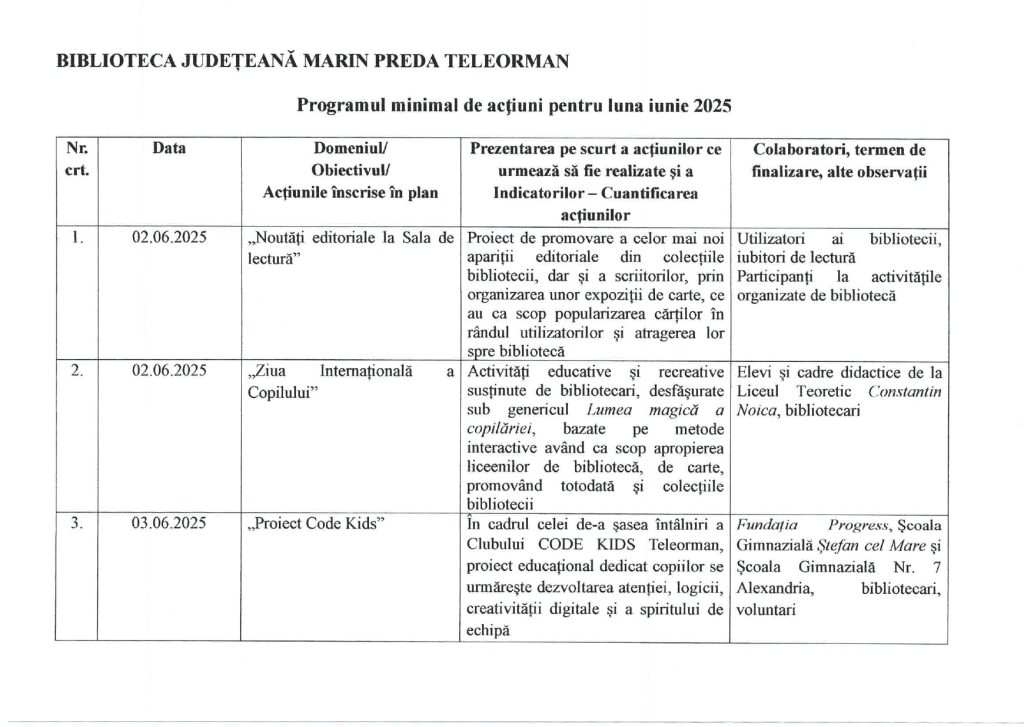 Programul minimal de acțiuni pentru luna iunie 2025
