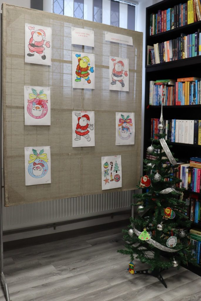 La final, copiii au susținut un scurt program de colinde, aducând atmosfera magică a sărbătorilor de iarnă în spațiul bibliotecii.