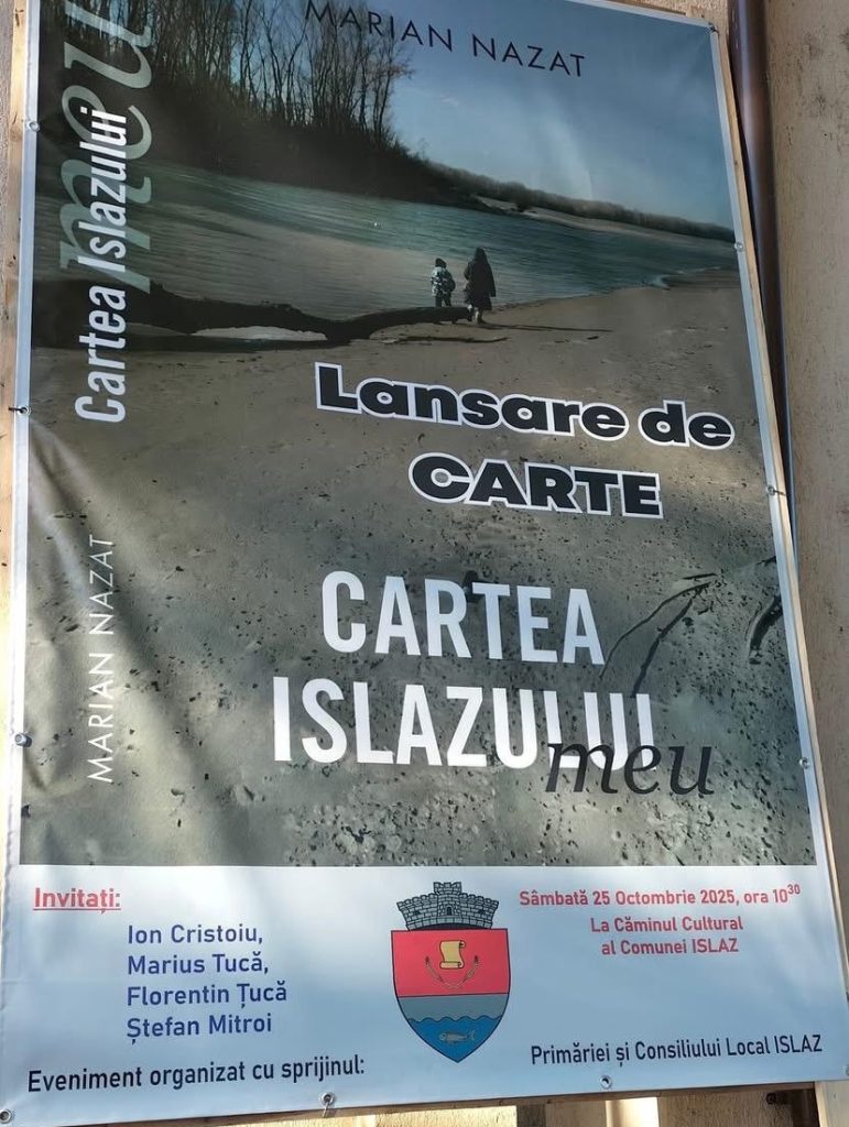 Sâmbătă, 25 octombrie 2025, la Căminul Cultural din comuna Islaz, județul Teleorman, a avut loc lansarea volumului „Cartea Islazului meu”, semnat de scriitorul Marian Nazat.