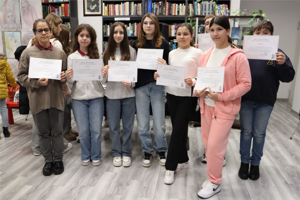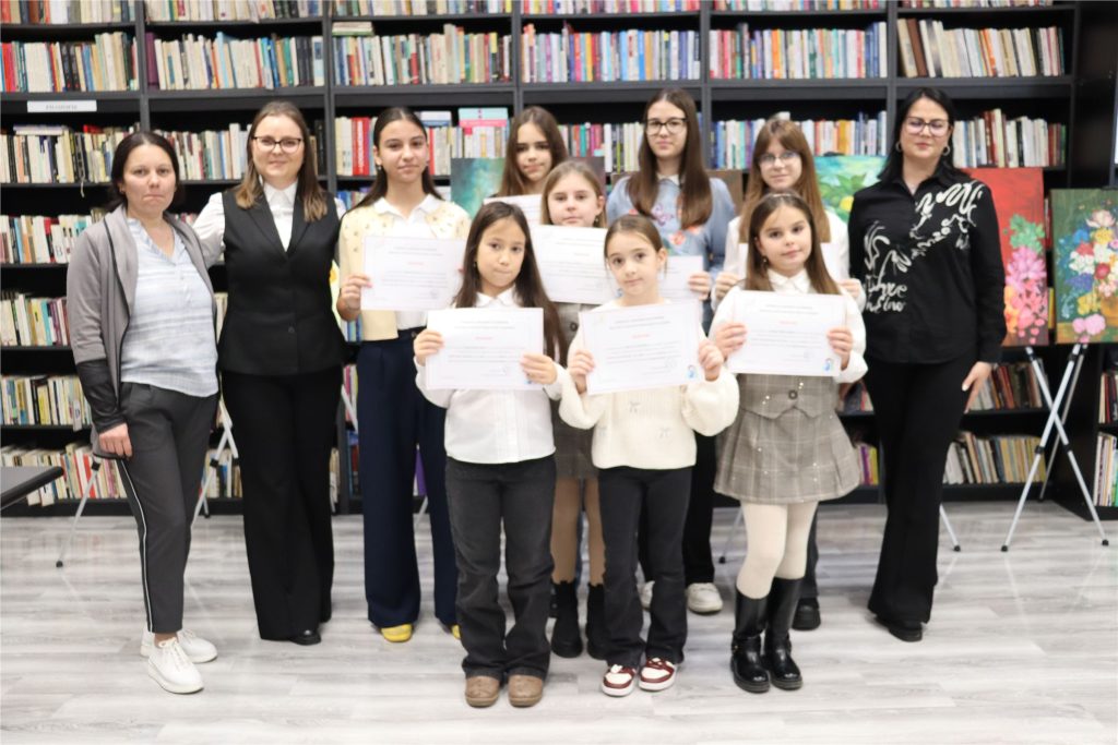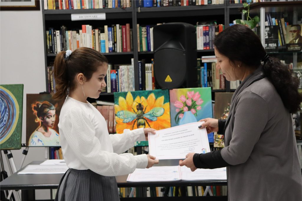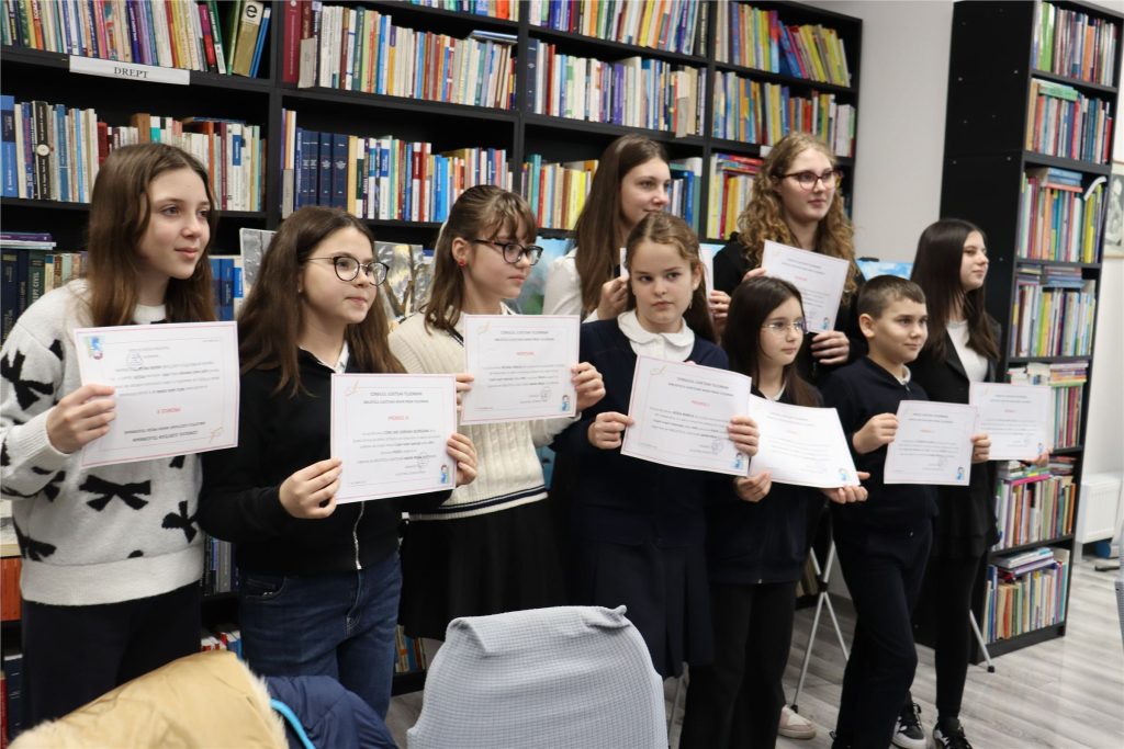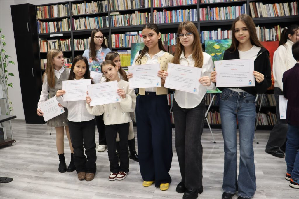 Sala de lectură a bibliotecii s-a umplut de copii emoționați, profesori mândri și părinți nerăbdători să-i vadă pe cei mici premiați. Atmosfera a fost caldă, plină de bucurie și aplauze, iar numărul mare al participanților a demonstrat, încă o dată, interesul copiilor pentru scris și pentru exprimarea prin cuvinte.