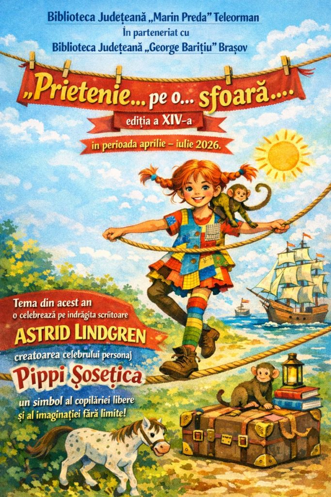 Biblioteca Județeană ”Marin Preda” Teleorman, în parteneriat cu Biblioteca Județeană ”George Barițiu” Brașov, anunță lansarea celei de-a XIV-a ediții a proiectului educațional internațional ”Prietenie… pe o… sfoară…”, desfășurat în perioada aprilie – iulie 2026.